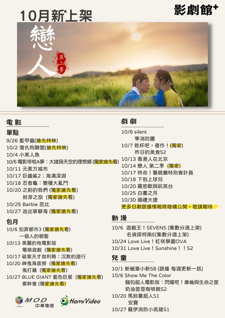 標題[情報] Hami Video 10上架&跟播日劇