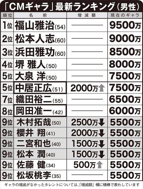 推 zzauber: 阿部寬,竹野內豐,西島秀俊的廣告乃酬竟然那麼低?沒有 10/20 23:55