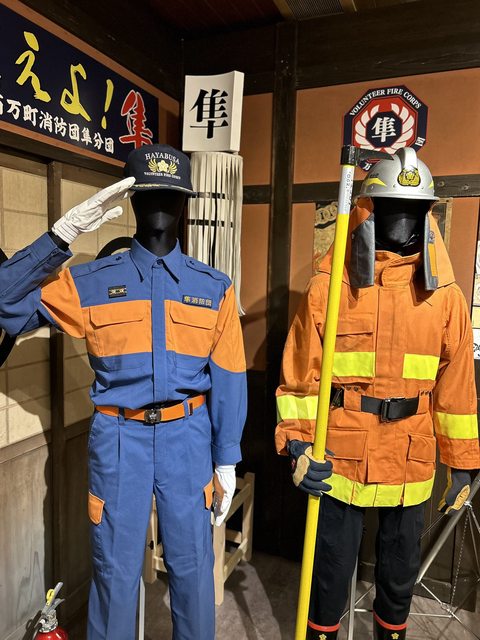 展示日劇「隼消防團」的道具、以及「隼消防團」原稿