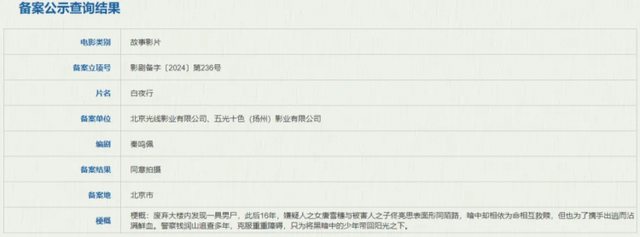 近日,中國國家電影局公開電影《白夜行》備案公示,電影改編自東野圭吾同名推理小說