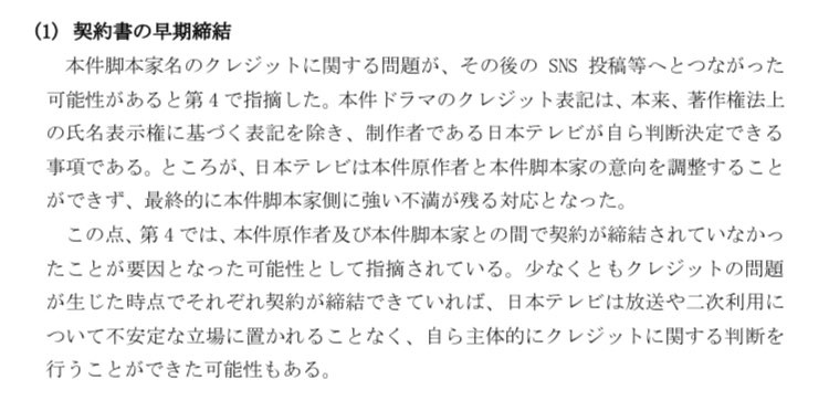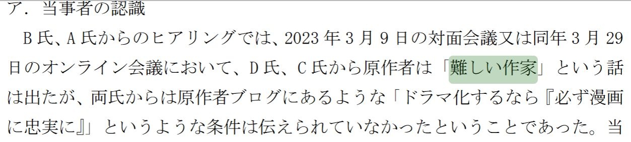 甚至報告書中還說到,因為當初改編電視劇提案時有契約書的約束,必須給原作者決定權
