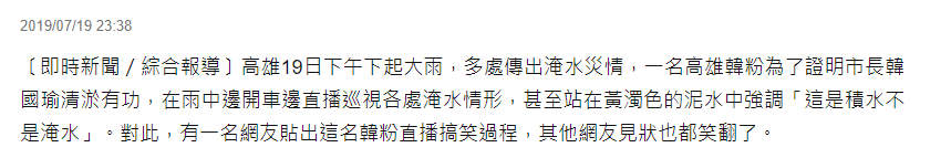 推 sls090 : 記得韓總時代一淹水就開始有網軍做圖出現在各大粉 08/07 17:02