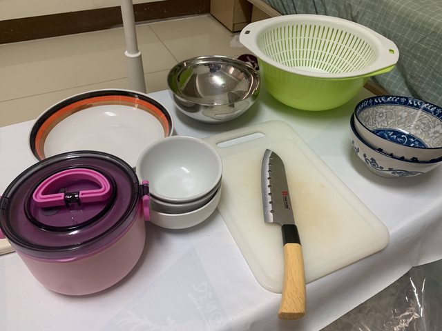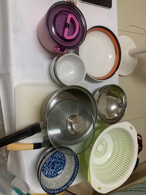 簡單鍋碗瓢盆等,有乾淨有些有使用痕跡