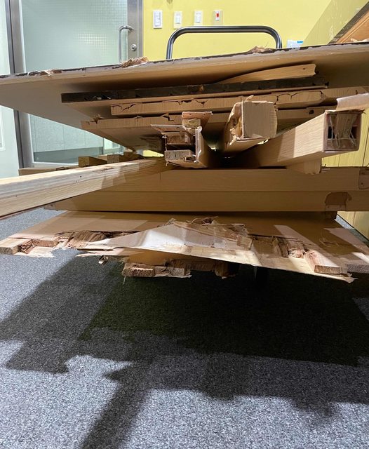→ dondon0419 : 這新蓋好的大樓每天都有。拆家具一堆木條 08/18 05:52