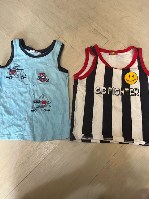 物品名稱: 男童約115公分,大約大班至小一適穿 鞋約21公分,約小一適穿 1.背心