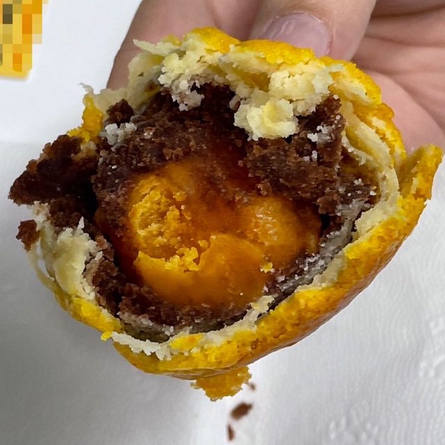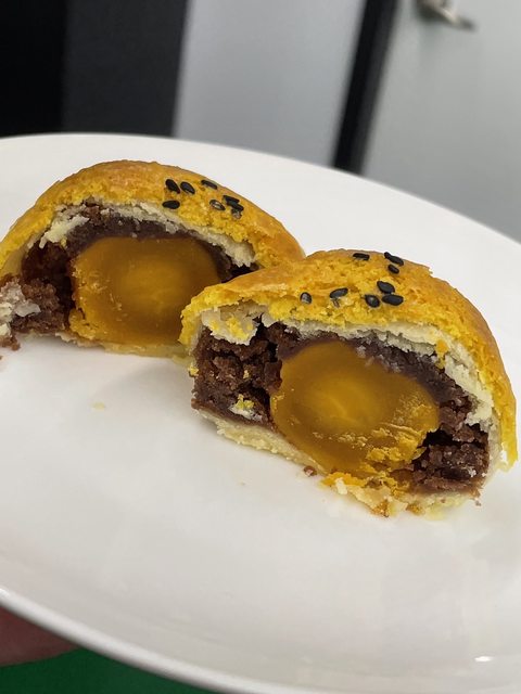 豆餡中夾著大大的紅土鹹鴨蛋蛋黃,