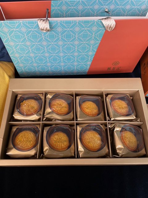 下面這盒是高雄的楓茶記的流心奶皇月餅,舉凡流心類(尤其布朗尼)我都超喜歡,而且他們家的不早點訂吃不到,所以 ~預習開跑!