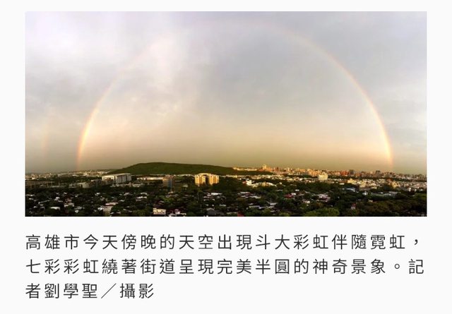 標題[新聞] 高雄雨後現七彩彩虹網驚「防護罩」 專家解釋關鍵原因