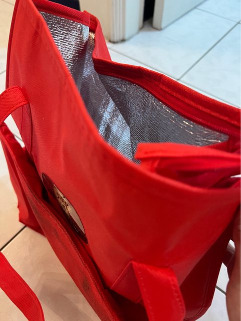 可裝蛋糕的大小,屬於薄的保冷袋。