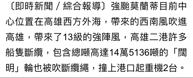 推 lewecool : 莫蘭蒂那時候,我汽車的擋風玻璃還被砸爛 09/04 13:35