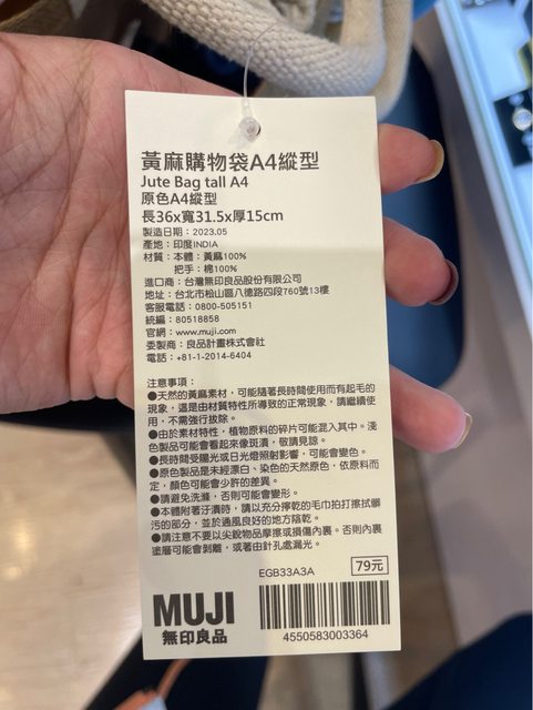 物品名稱:無印良品黃麻購物袋A4縱型