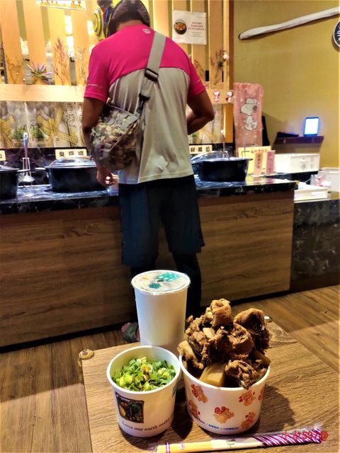 點餐的方式,告知櫃台人數,櫃台會給一個紙碗