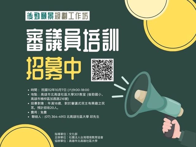 標題[閒聊] 《後勁願景規劃工作坊》審議員培訓招募