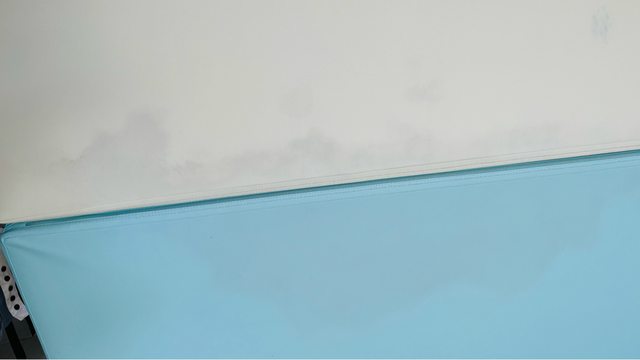 因地墊上長期放置圍欄,故部分地墊有凹陷情況,另先前掃拖機器人有漏水情形,導致地