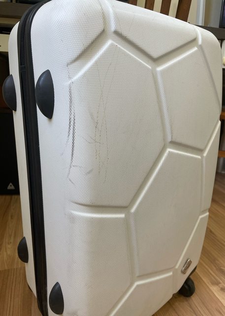 物品狀況:表面有刮痕,拉桿有時會稍微卡但可使用,輪子可正常滑動