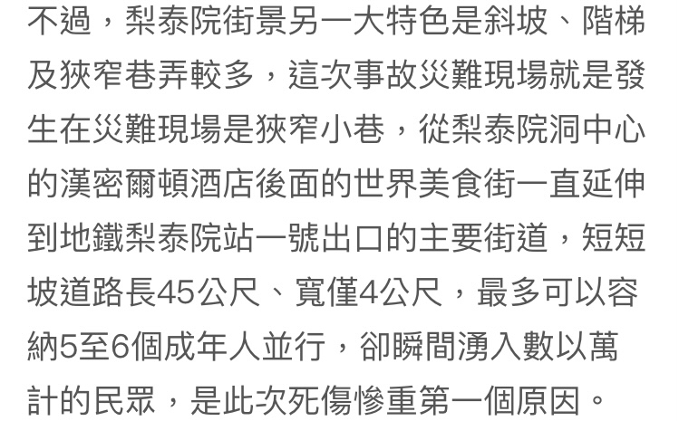 推 usper : 梨泰院是巷道狹小才造成的意外,你要五福路有這種可 10/28 22:57