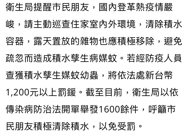 → goldfishert : 要查到有病媒蚊孑孓才會開罰 11/03 14:31