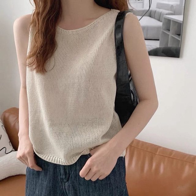 5.針織米白背心
