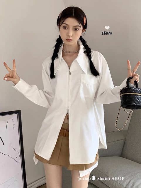 3.拉鍊白襯衫