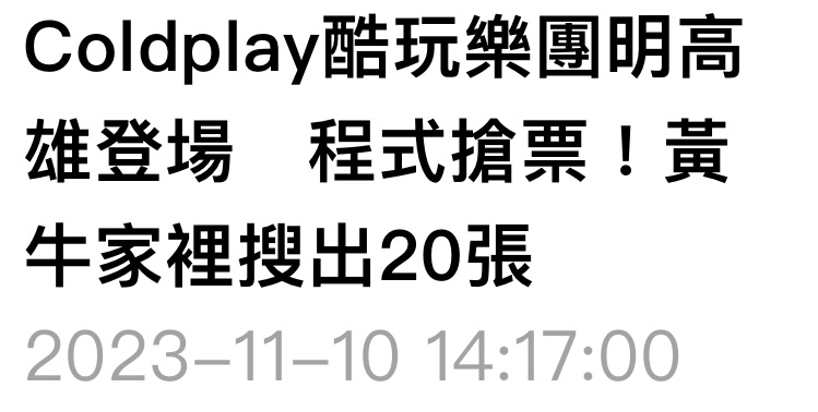 標題[新聞] Coldplay明起連2天世運開唱「沒車位」