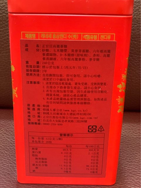 物品名稱:正官庒高麗蔘糖一罐