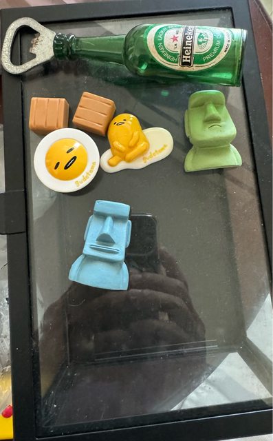 磁鐵被訂了、杯子跟飲料袋也被訂了