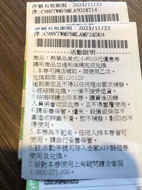 標題[贈送] 全家小熱美*2序號 2組