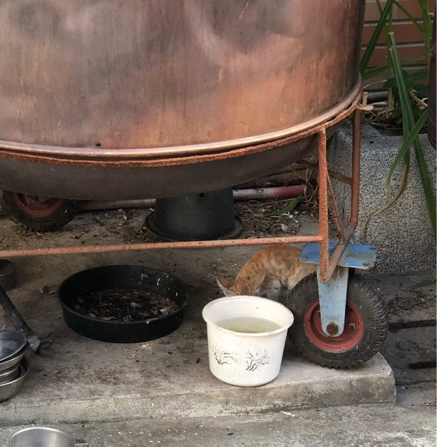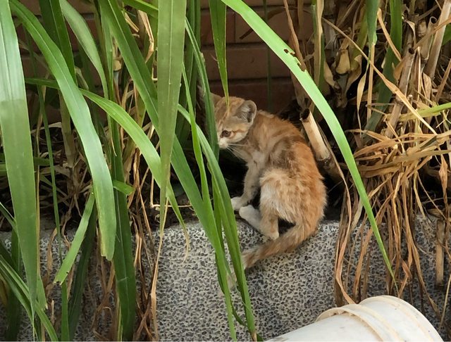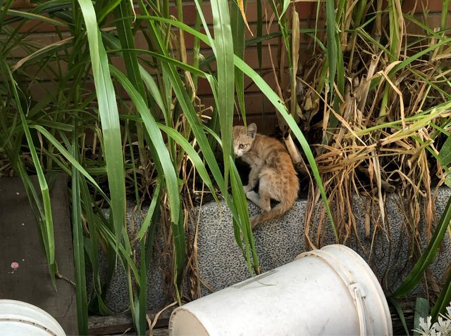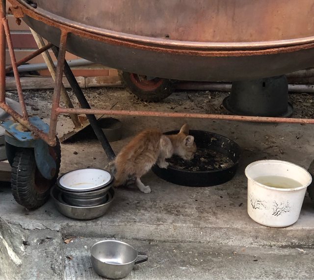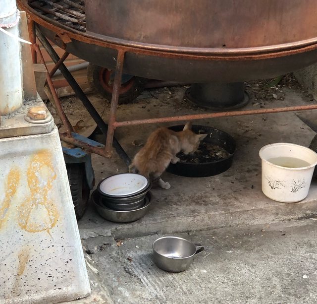 到時候發現一隻很瘦的幼貓?平常沒看過,我看他在舔食旁邊空碗剩下的魚渣渣,但是看