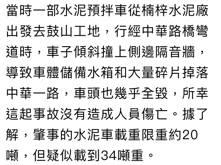 推 querencia : 水泥車翻覆是在翠華轉中華高架上,連續兩年都有超 11/16 14:44