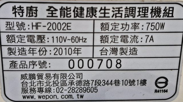 ※物品名稱:調理機組(換出)
