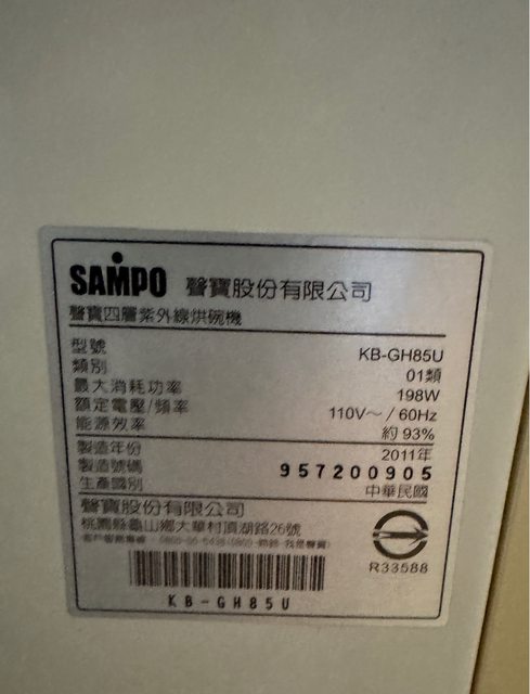 1.聲寶烘碗機KB-GH85U