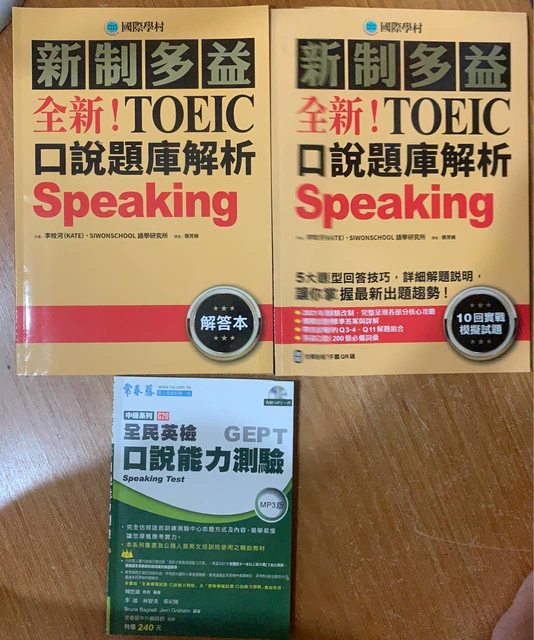 物品狀況:口說當然書很新XD光碟正常,附贈一本全民英檢口說