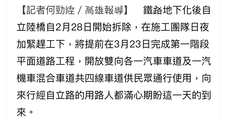→ momotaloson : 衡量所有高雄市民的福祉,所以還是只能夜間施工 12/13 10:40