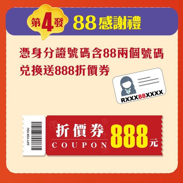 身份證有88連號再送888折價券