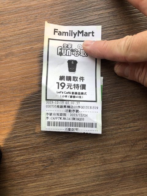 [贈送] 全家熱美領件19元券*1