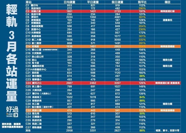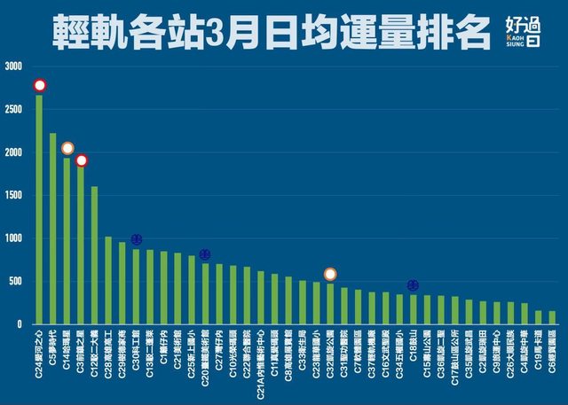 【輕軌3月【輕軌3月各站運量排名:有讓你跌破眼鏡嗎?】