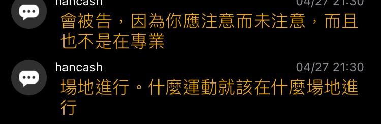 → hancash : 的場地做不對的運動,本來就應負有注意義務了 04/27 21:39