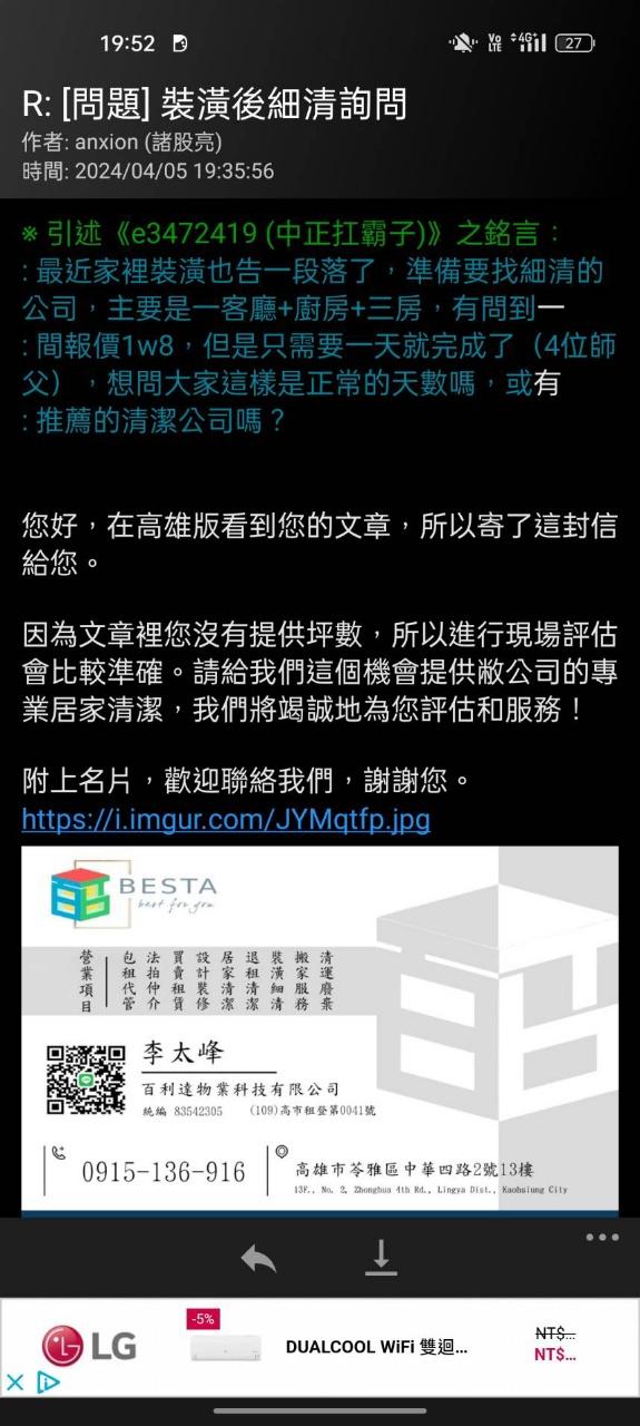 推 rox119 : 泰隆清潔,不錯 05/02 10:48