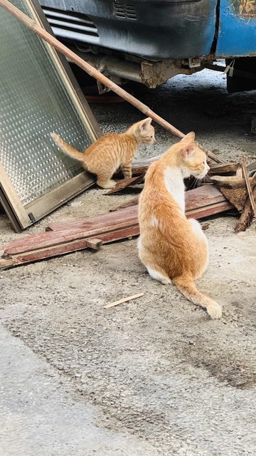 有老阿嬤幫忙餵食, 抓了兩隻放了一隻 外面那隻貓很活潑會撒嬌目測是小女生