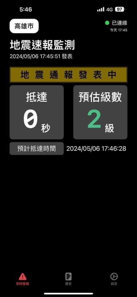推 tszt : 我看新聞有通知真的有地震來了 05/06 17:54