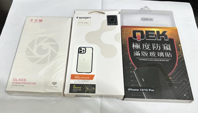 (已換)3. i12 spigen保護殼深藍9.5成新、手機螢幕保護貼剩1片、相機鏡頭保護貼全新