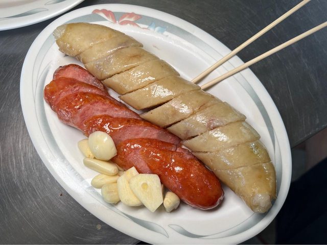 廟口香腸攤是在憲德宮正門進去前方的鐵皮攤位,