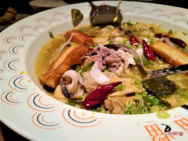 招牌酸菜魚則是點2-3人份,再加料美國牛五花+老皮豆腐/腐皮/油條