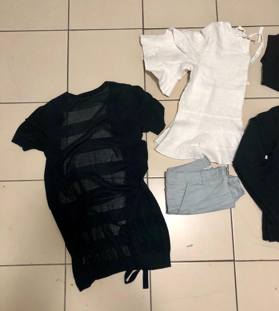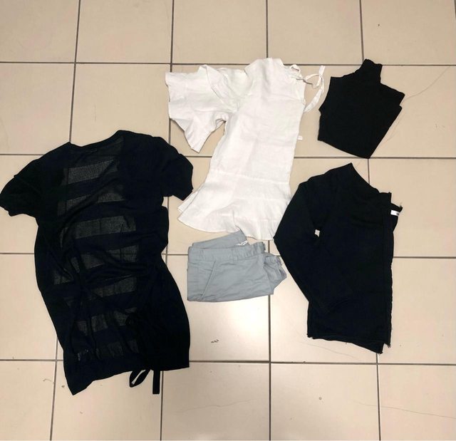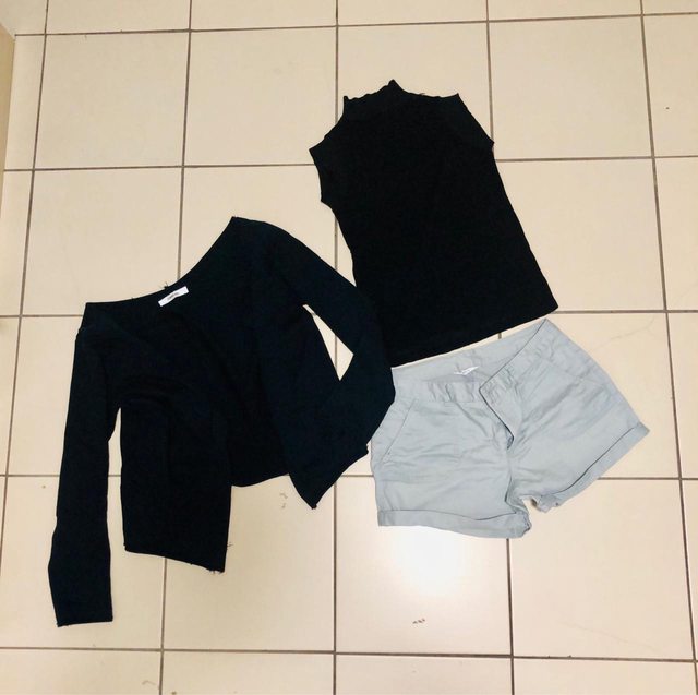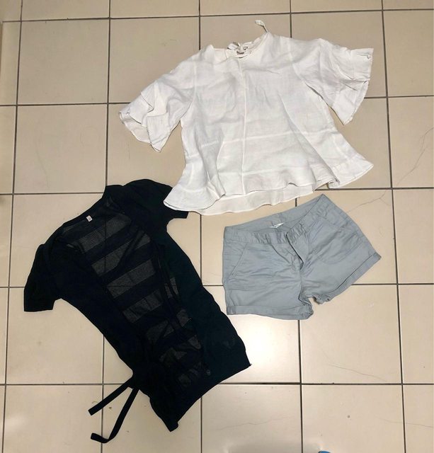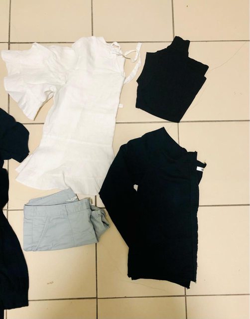 1. Uniqlo、net、cantwo、韓牌等牌子衣褲 黑色針織短袖長版外套(後有綁帶、身形更好 黑色百搭背心(削肩 白色波浪質感上衣(材質很優 淺藍休閒短褲 黑色長袖隨身外套 約S-M女孩可著,8-9成新不等
