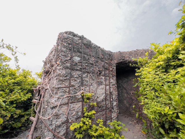 從碉堡的正面入口進去之後,直走到底從對側出去沿著路徑前進並往上,抵達碉堡的2F(?