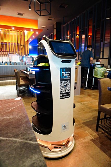 送餐機器人會幫你送餐, 還可以唱生日快樂歌XD