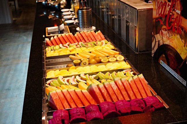肉類, 生菜, 烤的甜點都是送餐機器人送到桌邊