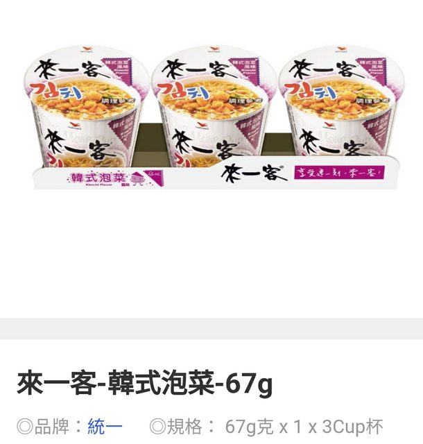 第3項換【來一客】韓式泡菜杯麵 12杯