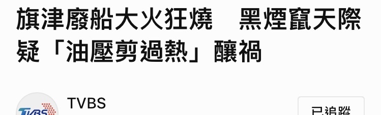 → hantulee : 旗津地區若有黑煙通常都是船廠 05/26 06:53
