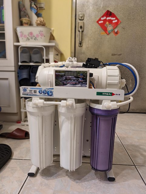 面板TDS讀值故障,另後置第五還第六道濾心有點滲水。另外接管,三通部分需自備。